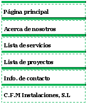 Página principal | Acerca de nosotros | Información de contacto | Lista de servicios | Lista de proyectos | |